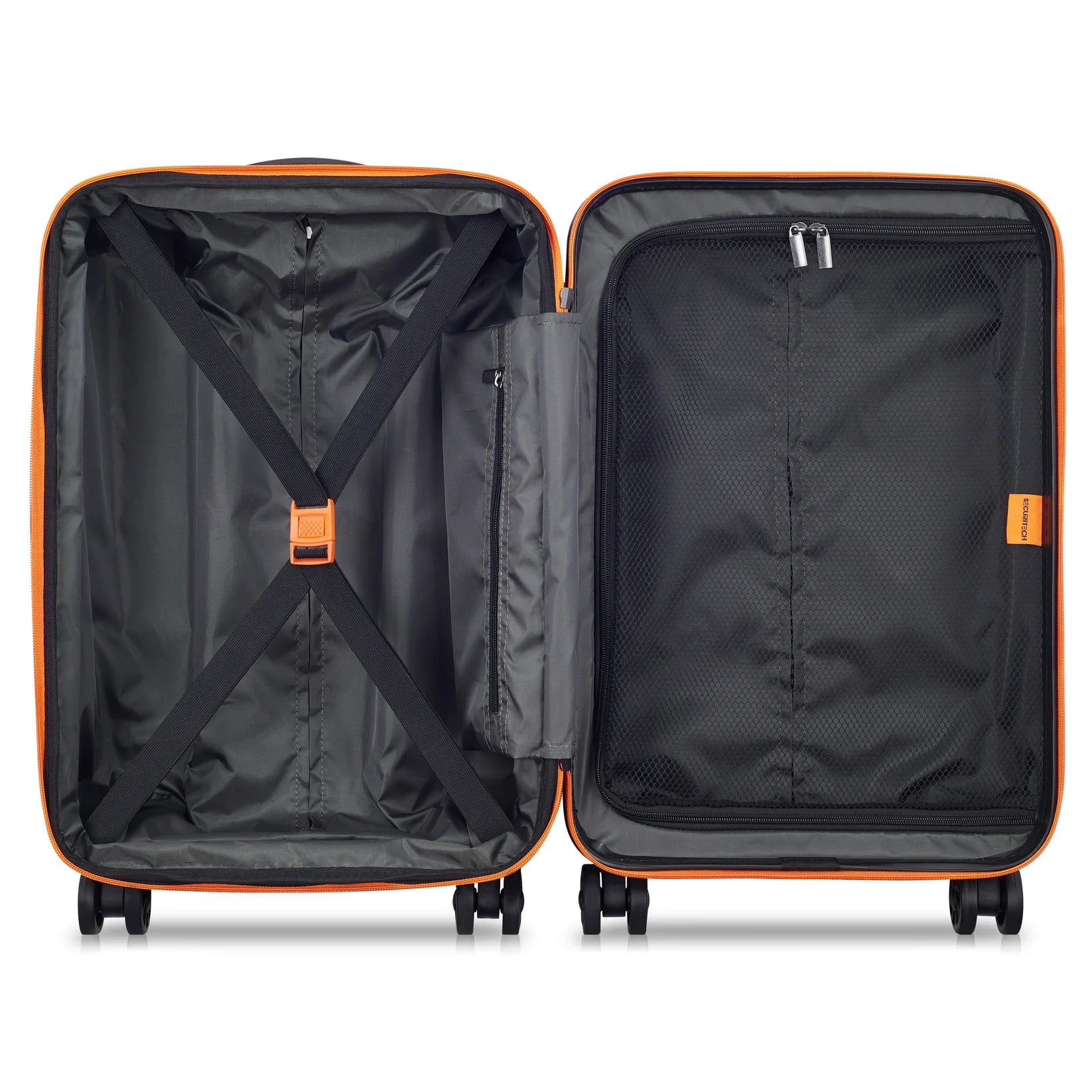 With its distinctive orange Securitech finish, it is easily identifiable in both the baggage compartment and the overhead locker of the plane, so you never lose sight of it.
