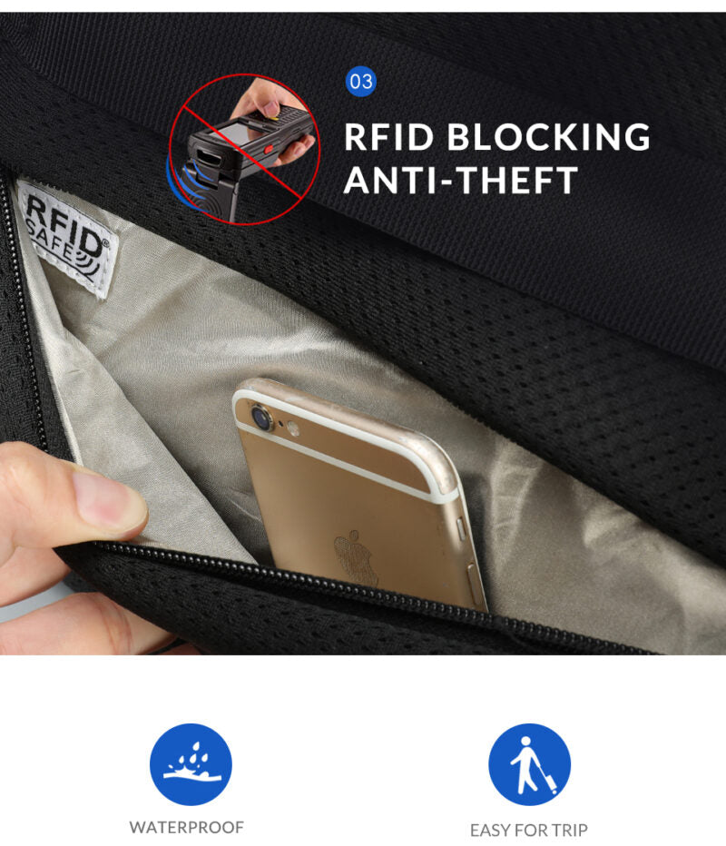 It features a separate compartment for a laptop up to 15.6” with soft protective lining, as well as multiple internal and external pockets for documents, chargers and personal items. RFID protection in the back pocket secures your card data from unwanted scanning, while the double anti-theft zipper enhances the security of your belongings.